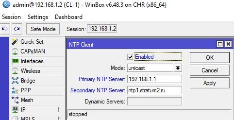 В RouterOS есть встроенный упрощённый клиент NTP, доступный через опцию Use Peer NTP в настройках DHCP-Client (CL-1). Эта опция позволяет получать NTP-серверы по DHCP (если DHCP-сервер их раздаёт).